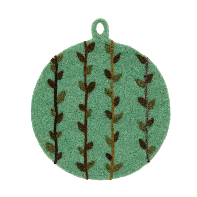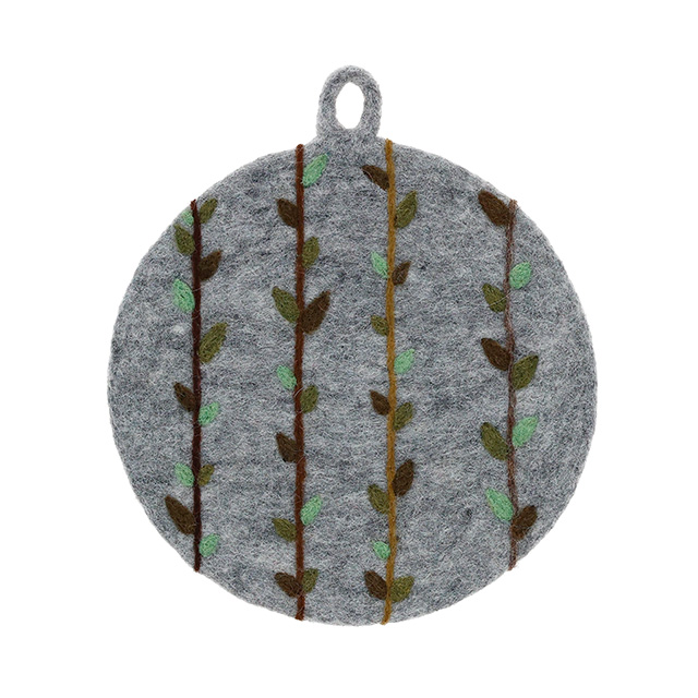 ネパール フェルト雑貨 キッチンリーフ 鍋 グレー/グリーン