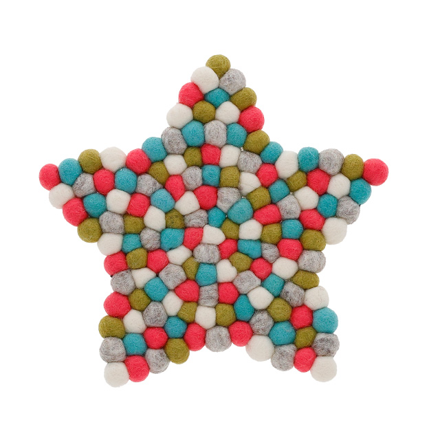 ネパール フェルト雑貨 ポコポコスター 鍋敷き グリーン/ピンク
