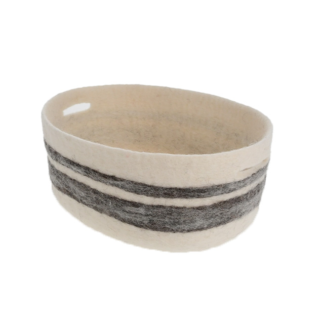 ネパール フェルト雑貨 ボーダーバスケット(グレー) S/M